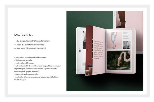 Mia catalog是一个可打印的杂志组合模板(不是模型),非常适合时尚和生活方式品牌、创意机构。 它可以作为展示作品或产品的组合/书籍/目录。