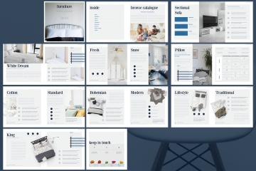 时尚高端简约时尚正方形家具产品目录企业宣传手册房地产楼书杂志画册品牌手册设计模板(indd),一种专业品质,易于使用的艺术品。该模板具有最小的设计,出色的空白使用和强大的字体使用,包含了很多适合各种项目的页面布局。