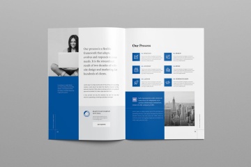 只需放入自己的图片和文字,就可以打印了。或者将其用作专业的在线PDF或电子邮件附件。本手册可用于多种用途。它作为企业形象宣传册非常有用 – 用于