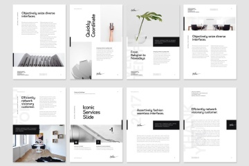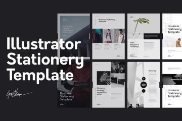 罕见的时尚简洁黑白商务商业杂志画册设计模板nano-illustrator-stationery-template