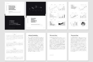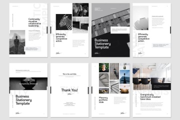 图穷联素材库 » 罕见的时尚简洁黑白商务商业杂志画册设计模板nano-illustrator-stationery-template