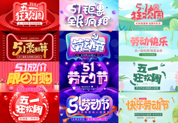 图穷联素材库 » 淘宝天猫51狂欢周五一劳动节三大风格海报PSD模板合集包免费下载