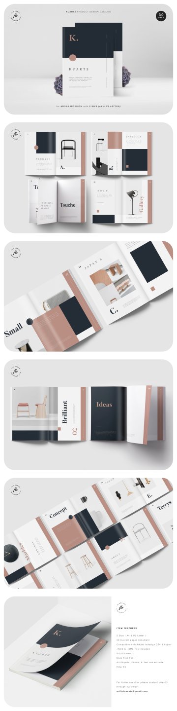 图穷联素材库 » 现代简约专业的杂志A4模板素材 KUARTZ Product Design Catalog