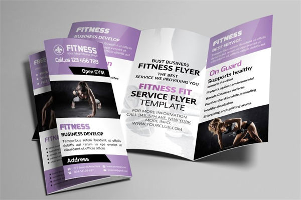 图穷联素材库 » 运动三折页画册 Sport Fitness Trifold Brochure