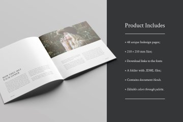 这是一个优雅的广场小册子模板,其中包含48个独特的页面。它是一个完全可定制的模板,兼容Adobe Indesign。有了这个方形的小册子模板,你可以用一种时尚和专业的方式展示自己!