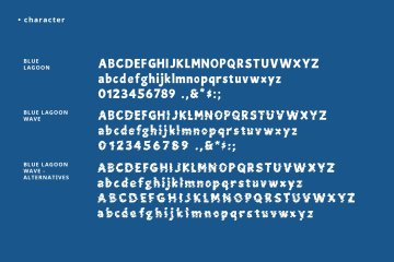 您能看到隐藏在此字体字符中的美丽水波纹吗?当您用它们写短语时,可以看到它们的柔和变形。字体支持以下文件类型(OTF和TTF),并已根据您说的任何语言进行了调整。潜入泻湖,那里有徽标设计,横幅,标头,邀请,海报以及您可以在其中找到的任何东西的绝佳创意。
