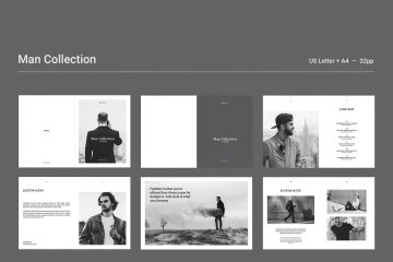 男人收集模板是干净,现代和专业与强烈的排版,使您的lookbook看起来专业。它是在Adobe InDesign中创建的,包含32页文档和两种纸张尺寸,包括US Letter和International A4。此模板适用于任何项目目的。
