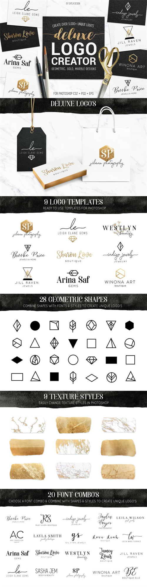 豪华金色几何徽标 Deluxe gold geometric logo creator