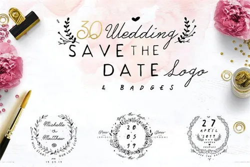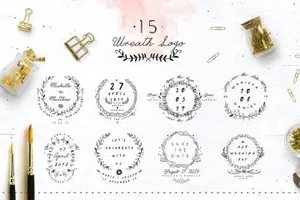 图穷联素材库 » 优雅的·花卉logo设计模板Save the Date Wreath Logo