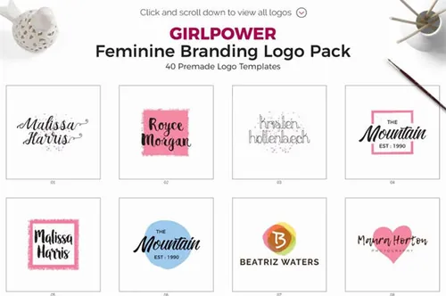 图穷联素材库 » 婚礼logo设计 Feminine Branding Logo Set