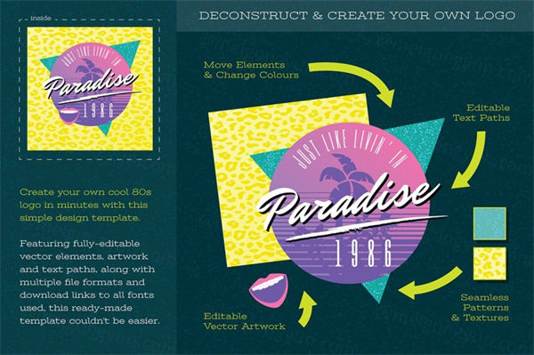 图穷联素材库 » 年代沙滩派对Logo设计 1980s Beach Party Logo