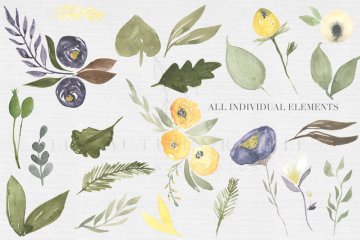 图穷联素材库 » 芥末水彩花卉logo设计剪贴画集 Must wine Floral Clipart Set