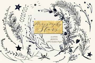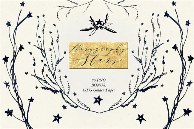 图穷联素材库 » 星星树枝元素的图形素材 Florygraphy STARS Ink