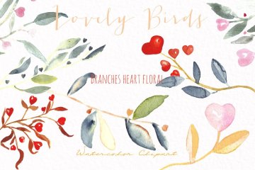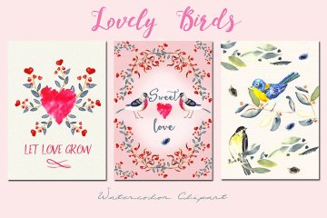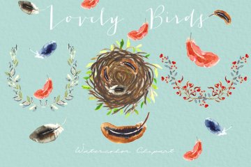 图穷联素材库 » 可爱的水彩彩色小鸟素材 Lovely birds.Watercolor