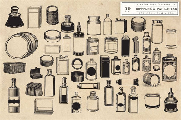 图穷联素材库 » 经典的瓶瓶罐罐素材包 Vintage Bottles Packaging