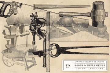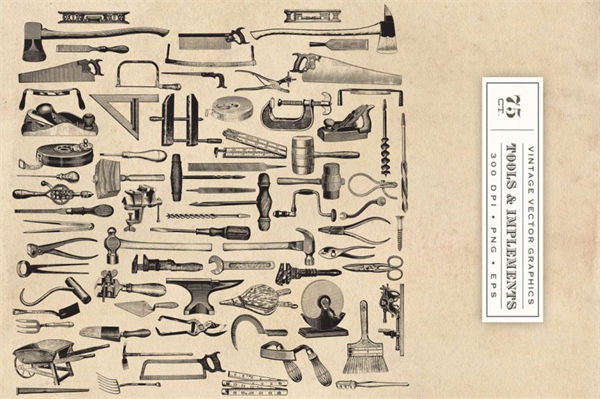 图穷联素材库 » 复古工具元素图形素材 Vintage Tool Implement