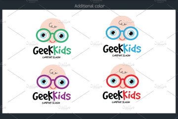 儿童卡通极客图形LOGO创意素材模板 Geek Kids