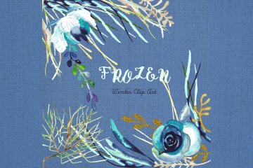 图穷联素材库 » 冰冻冬季主题的水彩画素材 Frozen. Glitter watercolor