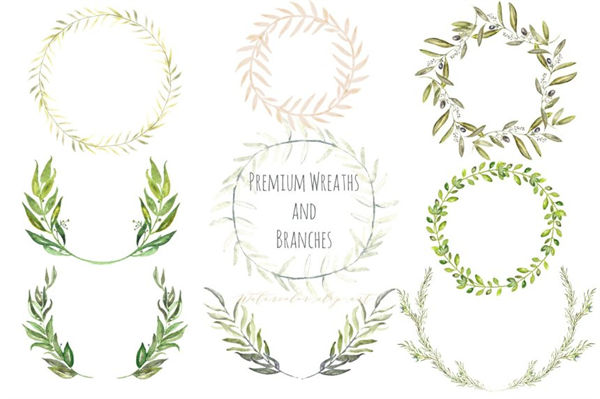 绿色植物花环素材 Premium wreaths and branches