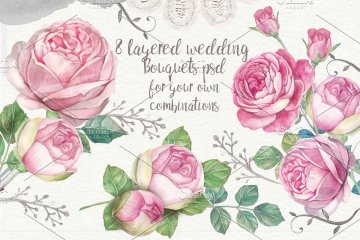 玫瑰水彩画素材 Roses watercolor 40PNG