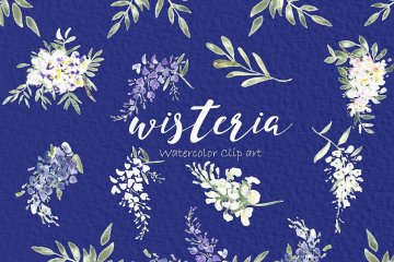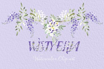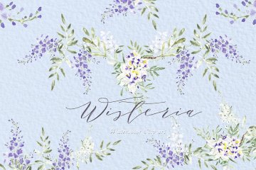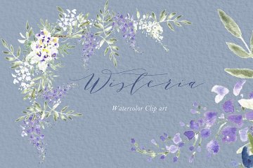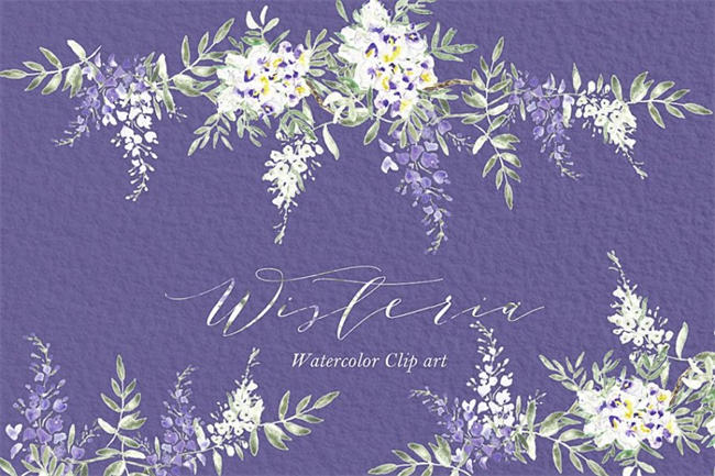 图穷联素材库 » 紫藤水彩画图形 Wisteria wedding watercolors