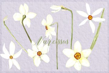 图穷联素材库 » 白水仙水彩画素材包 White Narcissus Watercolor