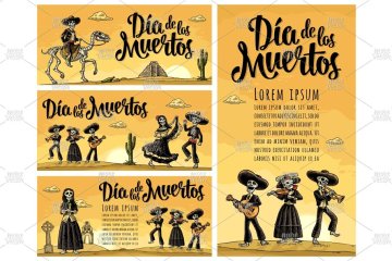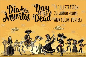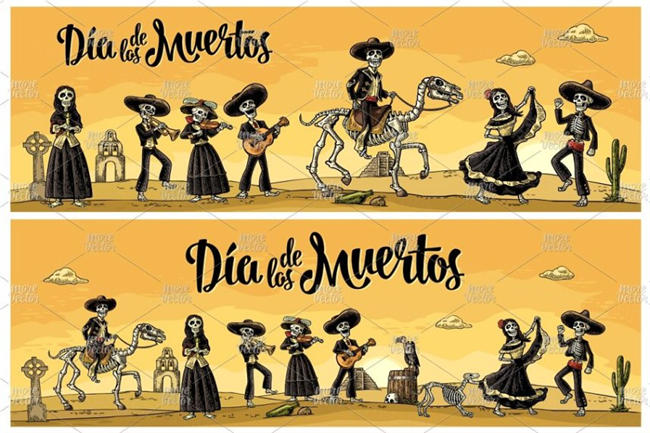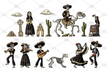 图穷联素材库 » 墨西哥骷髅骨架和死亡主题Bundle engraving