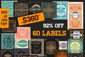 图穷联素材库 » 高端复古奢华的洋酒威士忌标签Labels bundle