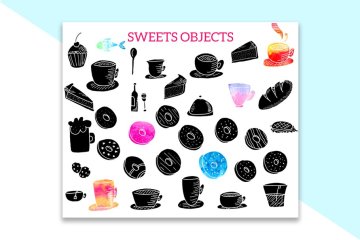 图穷联素材库 » 170个手绘水彩矢量元素FONTOMANIA COLOR