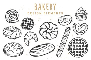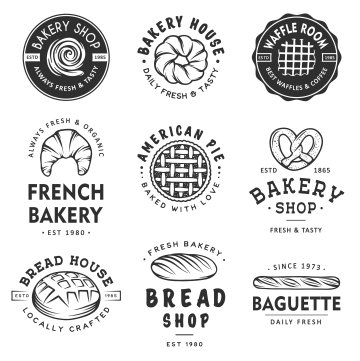 图穷联素材库 » 复古咖啡厅糕点面包房矢量元素图案合集包 Set of bakery logos and elements