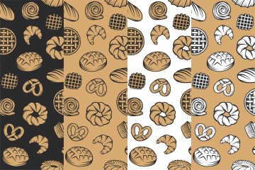 复古咖啡厅糕点面包房矢量元素图案合集包 Set of bakery logos and elements