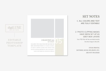 可编辑的Photoshop模板。可以更改文本、更改颜色和使用提供的剪贴蒙版。此模板专为经验丰富的Photoshop用户设计。