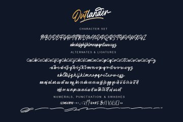 Outlander笔刷字体是使用自定义笔刷创建的一种脚本笔刷。有2种类型的字体具有标准模型和斜体,因此您可以将其用作徽标,徽章,包装,标题,海报,衬衫/衬衫等的类型。流畅的字符非常适合制作有趣的消息,以适合您的项目。