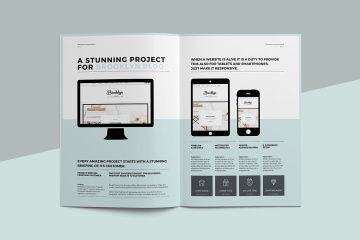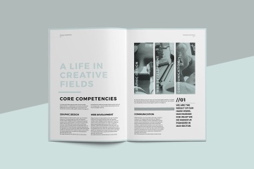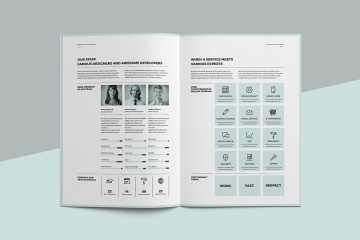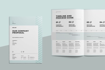 创意企业的最小和专业建议手册模板,使用国际DIN A4和美国信函格式在Adobe InDesign中创建。