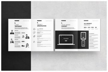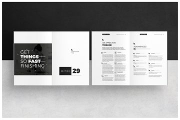 双折A4和美国字母组合设计。易于编辑字体,文字,颜色,完全adobe Photoshop格式。34页。