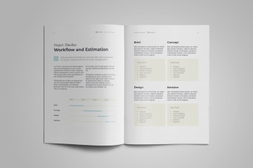 一个干净,专业的商业计划书模板,用于展示您的创意机构,设计工作室或初创公司。提供A4和US Letter尺寸,并与Adobe InDesign CS4或更高版本兼容。
