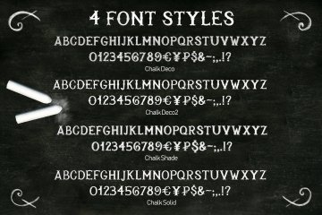 Chalk SVG字体是一种带有高清粉笔纹理的手刻字字体,完全内置在该字体中作为透明性。使Chalk SVG字体如此特别的原因在于它具有4种不同的样式:Solid,Shape,Deco,Deco2。