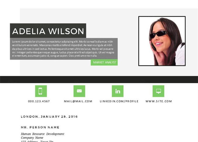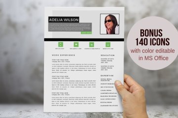 绿色照片Word简历模板 Green photo 2 in 1 Word resume