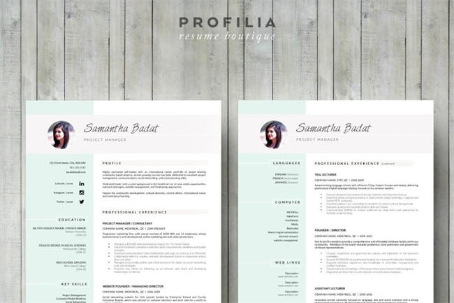 漂亮的Word简历模板 Word Resume Cover letter Template