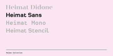 Heimat Sans is the grotesque typeface family within the Heimat Collection, also containing Heimat Serif, Heimat Mono and Heimat Stencil.