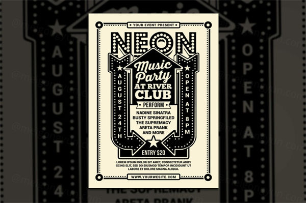 简约扁平化风格的复古霓虹音乐派对vintage-neon-music-party
