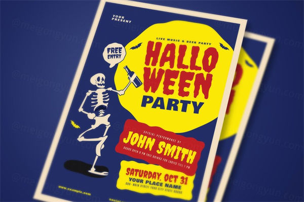 万圣节手绘海报设计 Old Retro Halloween Party Flyer