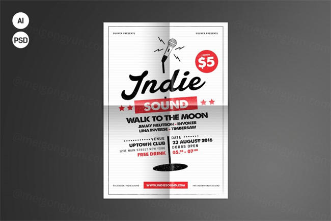 图穷联素材库 » 简单的活动通知海报设计 Indie Sound Flyer