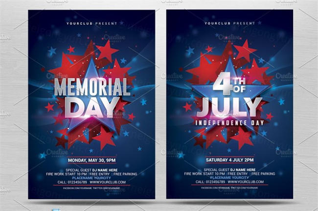 美国国庆海报设计 July 4th Memorial Day Flyer