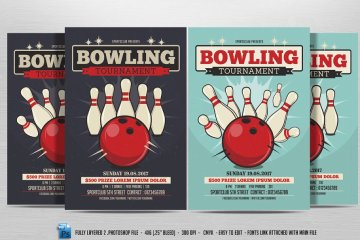 经典保龄球锦标赛传单模板 Bowling Tournament Flyer