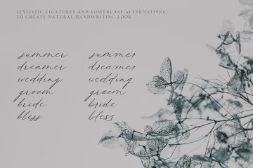 该字体包括连字和完整的小写字母替代集,以使您的文本尽可能接近自然的手写脚本。它非常适合婚礼设计项目,instagram,邀请函,签名,水印,徽标,凸版地址,标题,生日邀请,手写等。