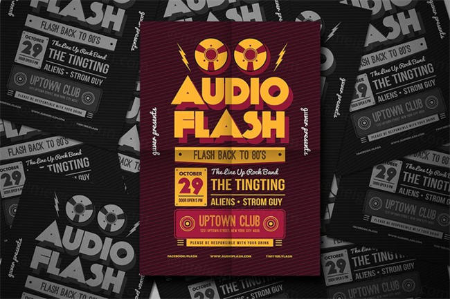 复古音乐海报设计模板 Audio Flash Music Flyer