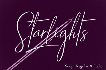 STARLIGHTS是一种新颖时尚的手写体时尚手写体,有两种常规和斜体样式。经典的脚本样式使该字体看起来自然,优雅且完美,适合需要手写体的任何很棒的项目。