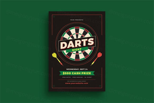 图穷联素材库 » 飞镖之夜活动传单设计 Darts Night Event Flyer