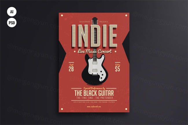 图穷联素材库 » 个性音乐宣传海报模板 Indie Week Flyer